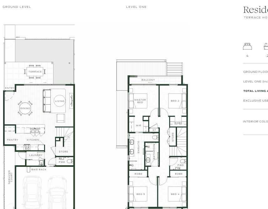 - Flexible floorplans with second living areas, powder rooms on both levels, and dedicated work-from-home spaces